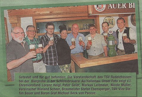 Mit dem Gottesdienst für verstorbene Mitglieder in der Pfarrkirche beginnen die tollen Tage an Christi Himmelfahrt um 9.30 Uhr, ehe alle Vereine nach dem Standkonzert mit der Abenstaler Blaskapelle und den Schlossberg Musikanten auf dem Kirchplatz feierlich zum Festplatz ziehen. Dort wird TSV-Vorsitzender Wieland Scheer das erste Fassl anzapfen und das Fest offiziell eröffnen. Am Donnerstag Abend spielen die Holledauer Hopfareißer auf, die am Freitag, 10. Mai, ab 19.30 Uhr von der Showband „Die Rottaler“ abgelöst werden. Zuvor kommen am Freitag die Kinder voll auf ihre Kosten, und zwar auf ganz geringe, denn ab 16 Uhr zahlen sie beim Kindernachmittag nur geringe Preise. Wie auch am Samstag, 11. Mai, von 15 bis 17.30 Uhr – am Nachmittag der „kleinen Preise, an dem es abends 100, 50, 30 und noch 20 Liter Bier zu gewinnen gibt. Helmut Schranner und seine Holledauer Musikanten umrahmen die Abendveranstaltung ab 18 Uhr.