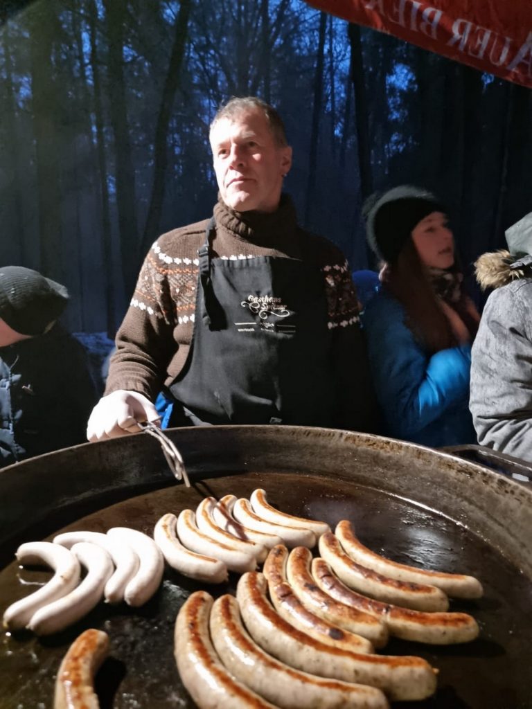 Später gab es unter Mithilfe der Eltern Würstl vom Grill, Plätzchen, Kuchen und Kinderpunsch.