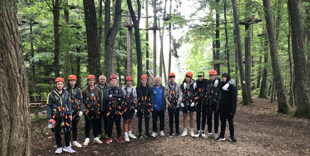 Rudelzhausen. (red) Die B-Jugend der Jugendkooperation des TSV Rudelzhausen, SC Tegernbach und SV Puttenhausen hat am vergangenen Wochenende ein dreitägiges Trainingslager auf dem Tegernbacher Vereinsgelände absolviert. Die Trainer Georg Hadersdorfer, Adolf Dietl und Christoph Geier konnten mit 15 Spielern fast den kompletten Kader begrüßen. Neben vier Trainingseinheiten standen unter anderem auch eine Fahrt zum Kletterpark in Jetzendorf (unser Bild) und ein Spiel in Uttenhofen an. Übernachtet wurde in der Halle des Sportheims. Nach der Urlaubs zeit konnte die Mannschaft intensiv an Technik, Kondition und Taktik arbeiten und dabei ganz nebenbei auch den Teamgeist stärken. Sehr zufrieden mit dem gemeinsamen Wochenende steht nun der Saisonstart in der Kreisliga an. – Foto: TSV