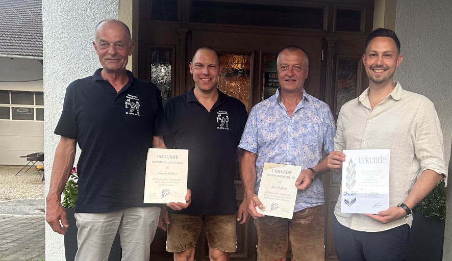 Abteilungsleiter Michael Plenagl (2. v.l.) mit den Gründungsmitgliedern Josef Zellner (2. v.r.) und Johann Zellner (links) sowie 2. Abteilungsleiter Stefan Brummer (rechts)