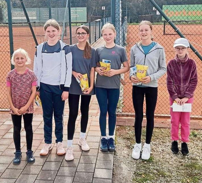 Die Mädchen der U12 waren auf der Tennisanlage vom TC Mauern zu Gast. Bei den sechs teilnehmerinnen wurde im Modus jede gegen jede ein kompletter Satz mit No-Ad-Regelung gespielt. Den dritten Platz erreichte Fabienne Rawe, den zweiten Platz Magdalena Wawersig, und auf den ersten Platz spielte sich Marlene Schweiger, alle drei kommen vom TV Nandlstadt.