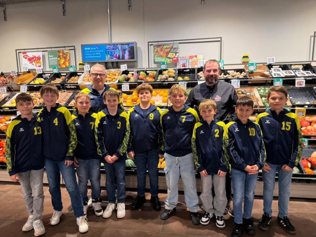 Ronny Haberkorn, der Betreiber vom REWE-Markt Mainburg hat die D2-Junioren mit Präsentations T-Shirts und Jacken ausgestattet.