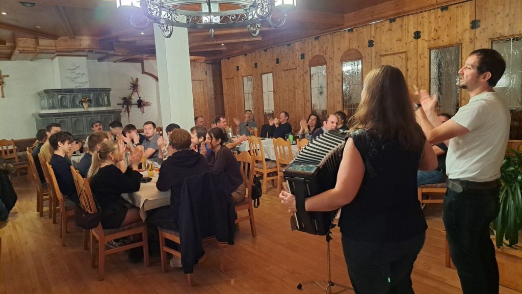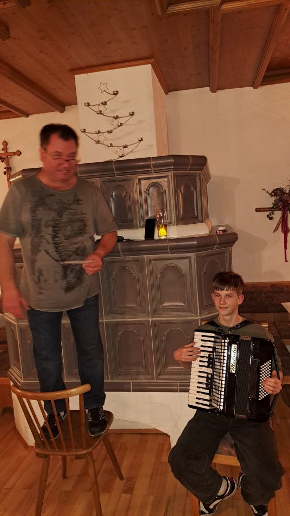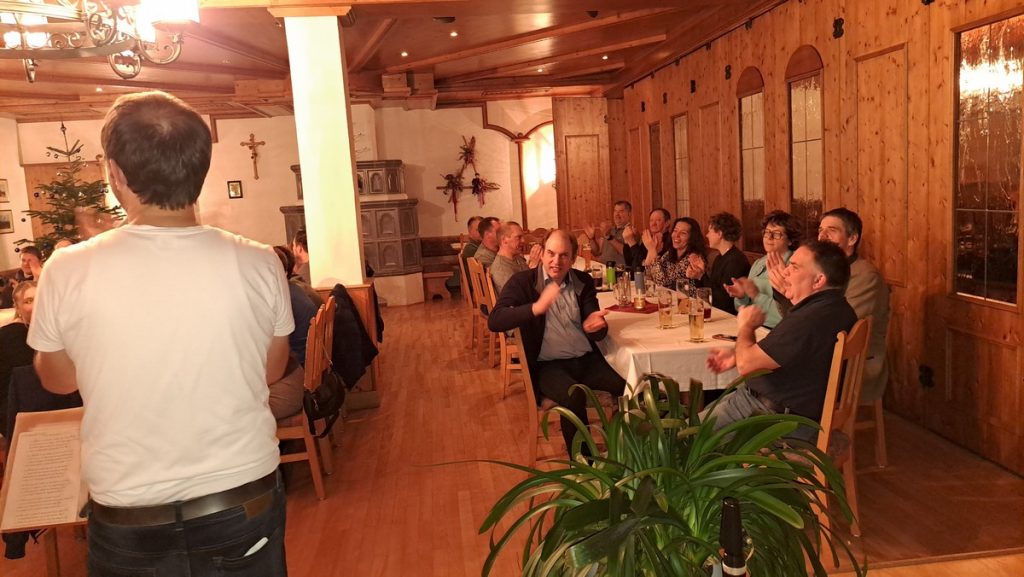 Der Saal war mit ca. 55 Personen leider nicht ganz voll. Es waren aber sehr viele junge Gäste, überwiegend Mitglieder und Freunde der Fußballabteilung, der Einladung gefolgt. Auch unser Bürgermeister Michael Krumbucher war mit seiner Frau gekommen. Unser 1.Vorsitzender Siegfried Grimm begrüßte alle die zur Weihnachtsfeier gekommen waren. Dann stimmten uns „Mare & Miche“ musikalisch und mit einigen weihnachtlichen Versen auf die „stade“ Zeit ein. Nach dem besinnlichen Teil der Weihnachtsfeier spielten Mare & Miche noch einige nicht so weihnachtliche Lieder und luden auch alle Anwesenden zum mitmachen ein. Mit dem gemeinsam gesungenen Holledauer Lied verabschiedeten sich dann Mare & Miche.