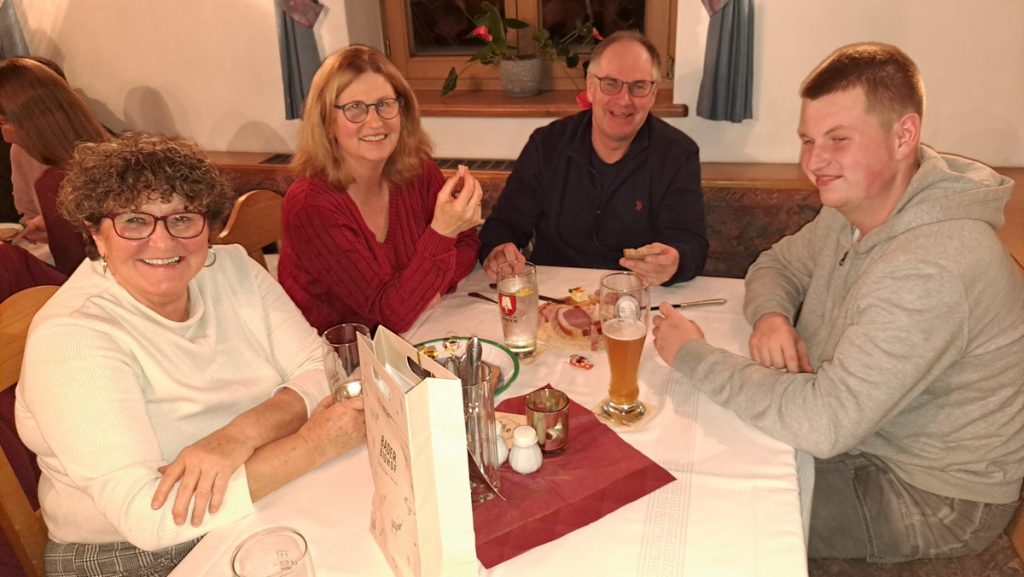 Nach einer Pause mit Glühwein und Plätzchen wurde dann auch auf den Christbaum geboten und der Christbaum anschließend für die weitere Versteigerung auch gleich wieder dem TSV spendiert. Als „Tuschspieler“ war Jürgens Sohn aktiv. Bei jeder Baumspende gabs einen Tusch und bei größeren Spenden gleich zwei oder auch mehr.