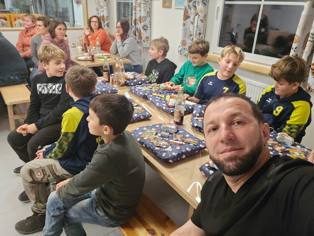 Anschließend bekam jedes Kind vom Trainer als Überraschung ein eigenes Duschtuch mit seinem Namen und Rückennummer drauf. Natürlich hatte der Trainer dazu zu jedem Kind etwas zu berichten.