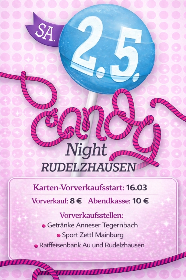 🍬 Endlich ist es wieder soweit! Am 02.05. steigt zum 14. Mal die legendäre Candy-Night im Rudelzhauser Biertempel. 🔥🍬